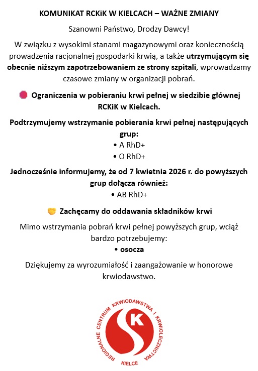 Regionalne Centrum Krwiodawstwa i Krwiolecznictwa w Kielcach