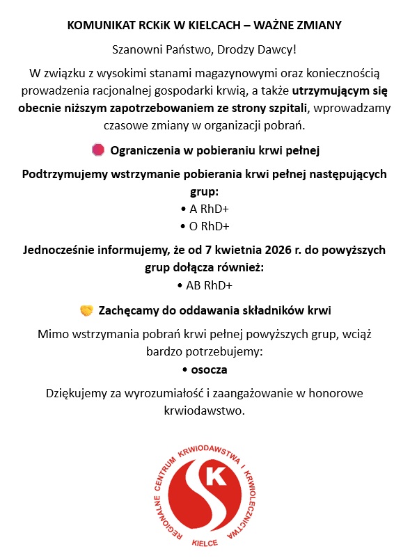 Regionalne Centrum Krwiodawstwa i Krwiolecznictwa w Kielcach