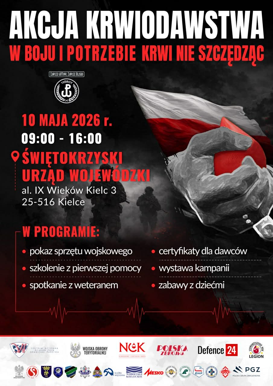 Regionalne Centrum Krwiodawstwa i Krwiolecznictwa w Kielcach włącza się w ogólnopolską kampanię „W BOJU I POTRZEBIE KRWI NIE SZCZĘDZĄC”, realizowaną wspólnie z Wojskami Obrony Terytorialnej.