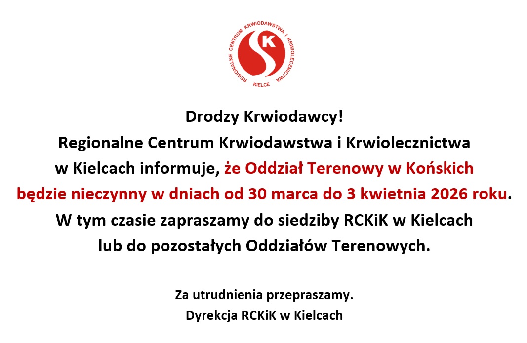 (Uwaga: Oddział w Skarżysku-Kam. nieczynny we wtorki, w które odbywa się akcja wyjazdowa w Starachowicach)